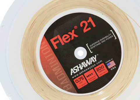 Our Flex 21 Badmonton string is 0.75mm in diameter for optimum durability. A multifilament core with MAX orinitation of filaments increases string life and insures superior response and power.