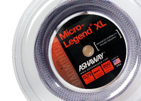 Ashaway Microlegend XL is our premium badminton string. It is 0.73mm in diameter for enchanced durability. A microfilament core with MAX orientation of filaments supports higher tensions and minimises tension loss.