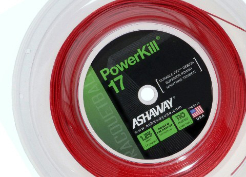 Ashaway Racket Strings has introduced a new string for top-level racquetball players looking for superior power and tension stability from Zyex® filaments. New PowerKill® 17, a lighter 1.25 mm version of its PowerKill Pro cousin, provides superior feel and ball control. Both feature a multifilament nylon core for optimum shear strength and durability, and a proprietary Power Filament Technology™ (PFT™) surface element of Zyex filaments that provides maximum power and tension stability. PFT string design is recommended for all types of power players and string breakers.