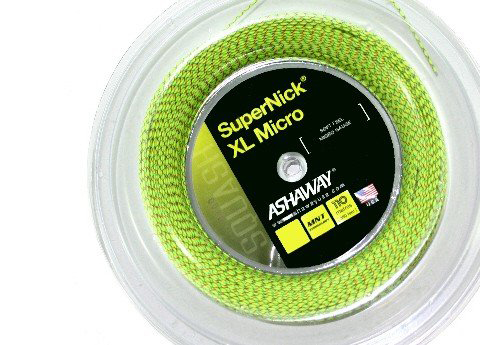 The Ashaway Supernick XL micro is 1.15mm in diameter with a multifilament nylon core for optimum ball control and resilience. The textured surface and thin diameter maximises the impart spin and cut the ball.