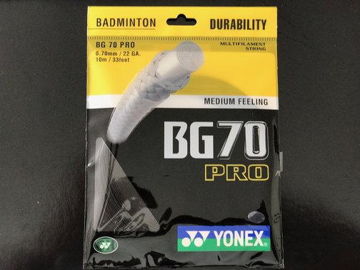 Yonex BG 70 Pro is made of an oval shaped fibre and provides great retention of string tension. It has a solid feel and was designed for the big hitters. White